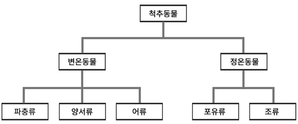 아래의 분류도를 보고 간단한 질문의 답을 생각해보자. '정온동물에 포유류가 포함되는가?' 답은 '그렇다'이다. '정온동물에 조류가 포함되는가?' 답은 역시 '그렇다'이다. 이를 통해 하위의 존재는 상위의 존재에 포함돼있음을 알 수 있다. 따라서 정온동물이라고 했을 때 포유류가 될 수도 조류가 될 수도 있는 것이다.