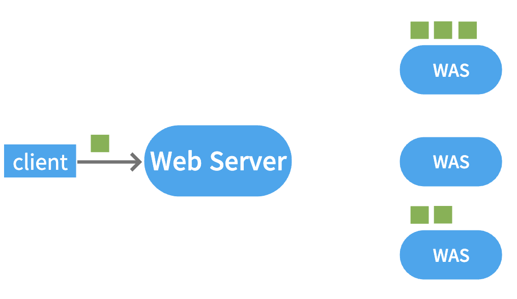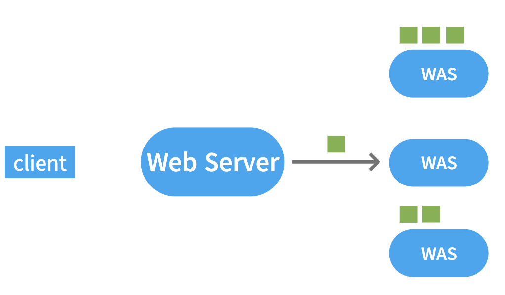 서버 이용자 수가 증가하며 하나의 WAS로는 감당이 불가능해 WAS를 증설하였다. 증설된 WAS에도 클라이언트를 고르게 분할(LoadBalancing)하여 안정된 서비스를 제공하려고 할 때 Web Server를 이용할 수 있다. WAS 이용 상태 및 현황에 따라 Web Server에서 클라이언트의 요청을 처리할 WAS를 선택하여 각 WAS에 걸리는 부하를 조절할 수 있다.