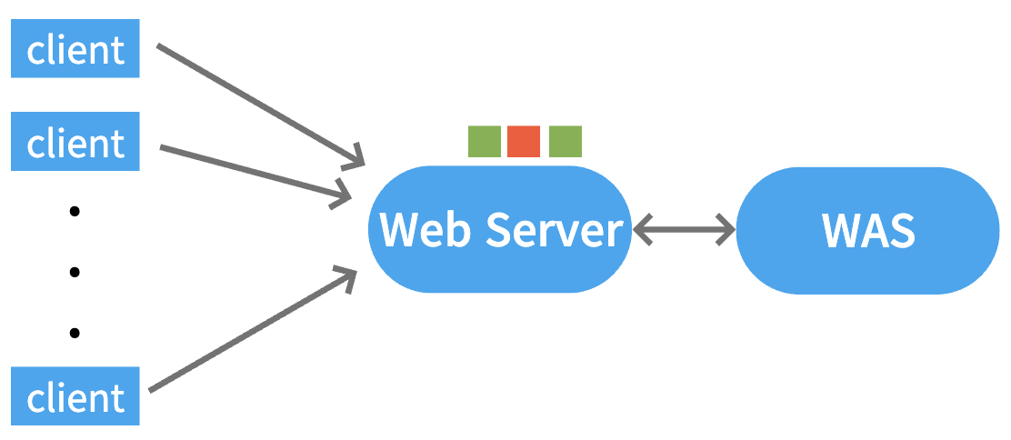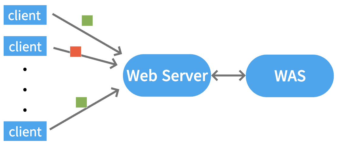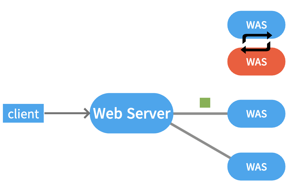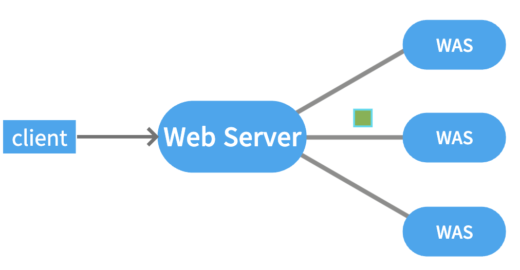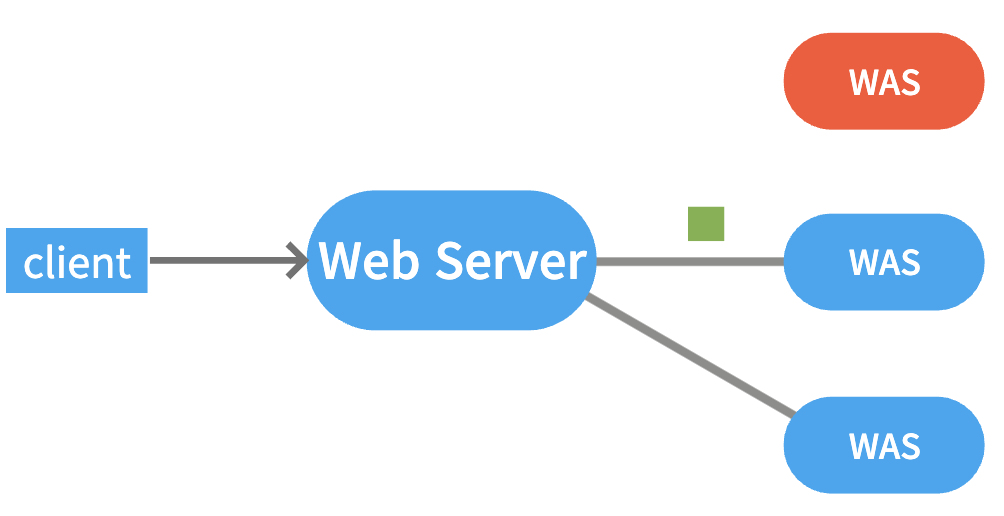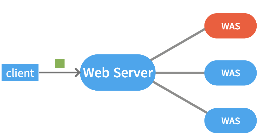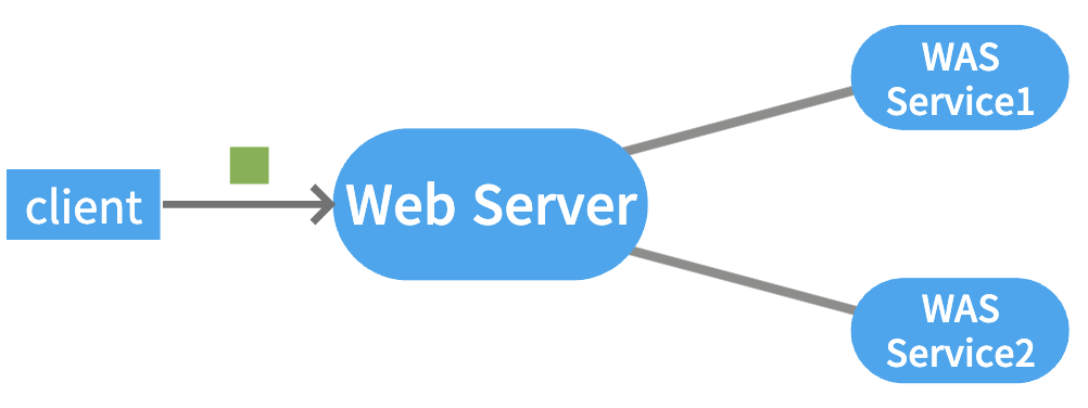 서로 다른 로직을 처리하는 WAS를 Web Server와 연결함으로써 클라이언트는 동일한 Web Server를 통해 다른 2가지의 서비스를 제공받을 수 있다. 즉, 클라이언트의 요청에 따라 Web Server에서 처리에 필요한 WAS를 선택할 수 있게 된다.