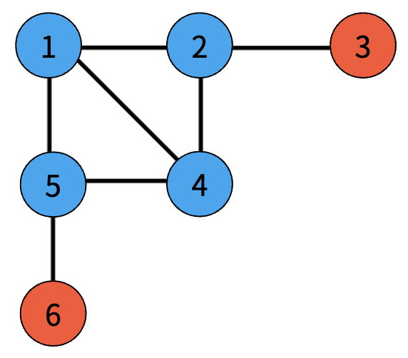 이제 찾은 2번, 4번, 5번 노드와 연결된 노드들을 찾아보자. 다음과 같이 3번, 5번 노드를 찾을 수 있다.
