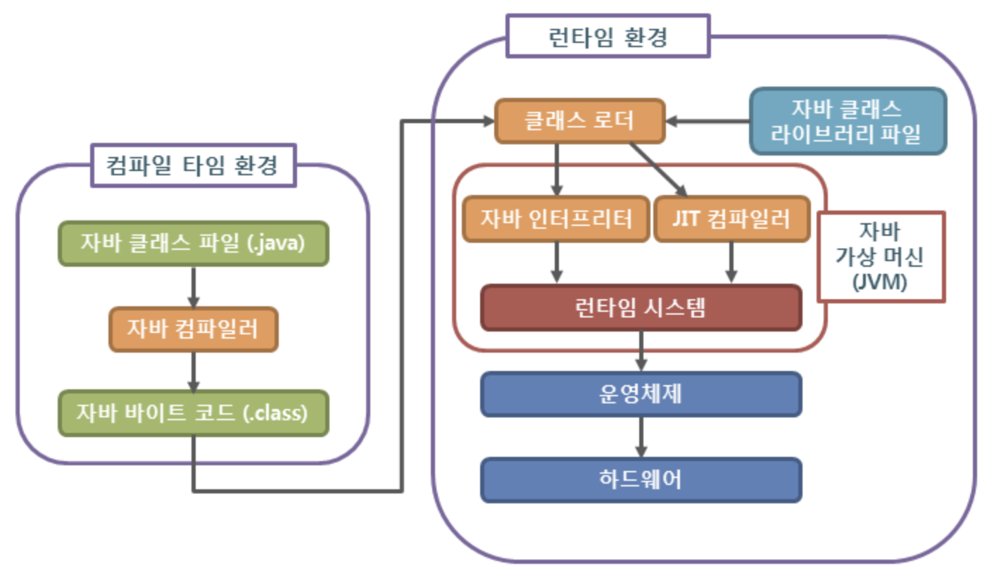 - JVM에서 .class를 바이너리 코드로 변환 및 실행