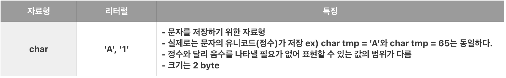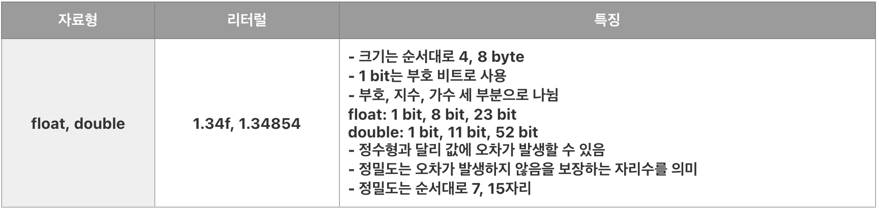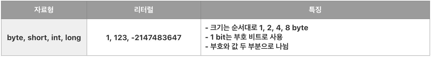 ※ int는 CPU가 가장 효율적으로 처리할 수 있는 타입이다.